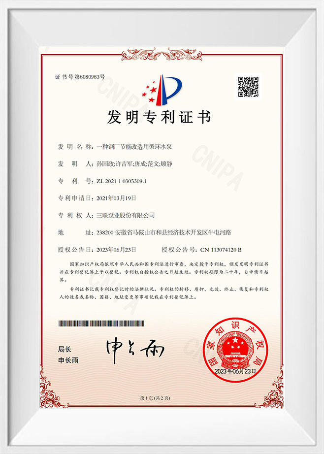 In 2013, Sanlian Pump Industry was recognized for its technological innovation and patents.